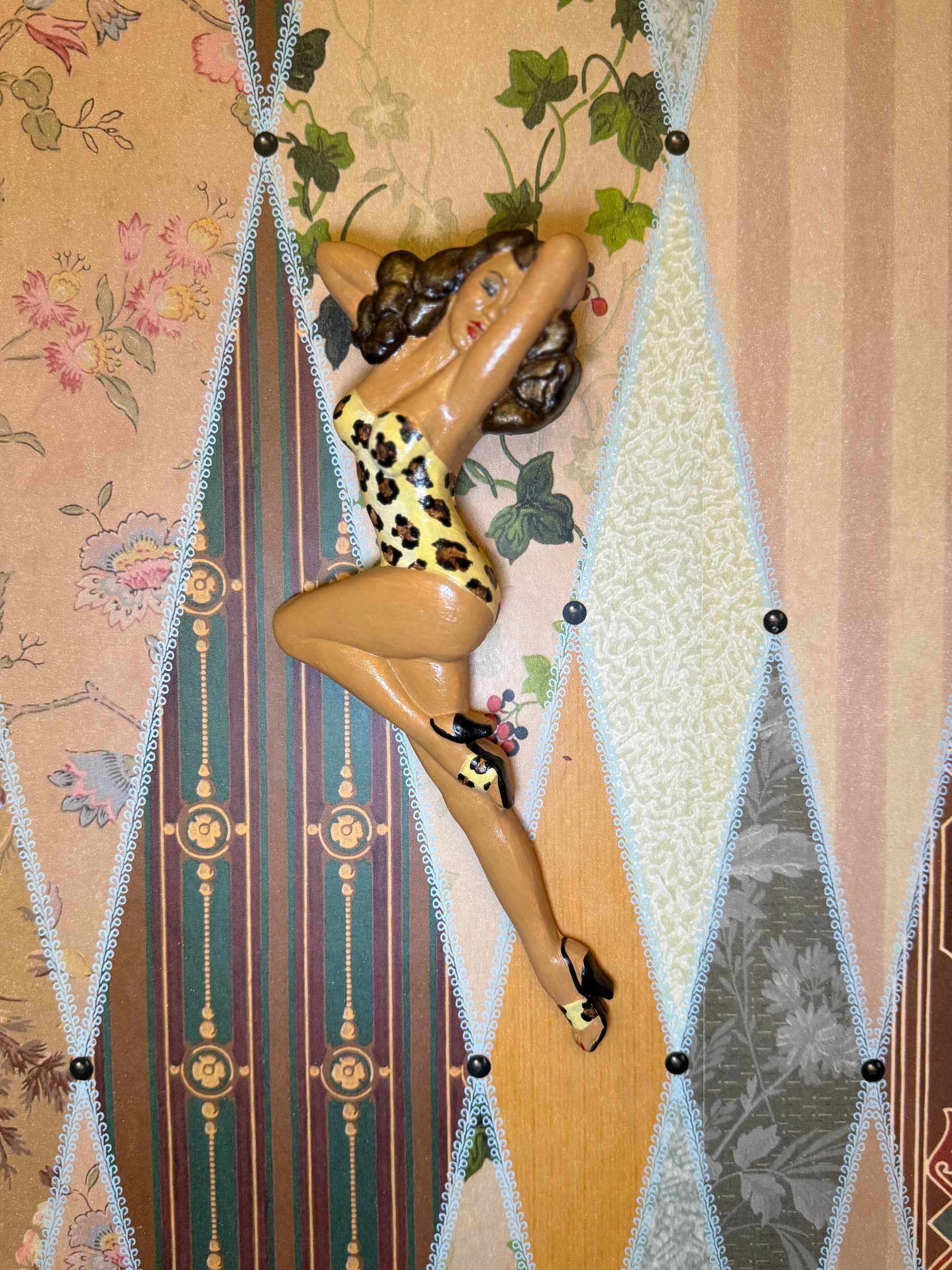 Inspired by me (!!!) and my favourite leopard print design, this pin-up features brunette hair, a striking animal print swim suit and has sweet matching stilettos.